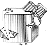 Crystal System -Tetrahedrons are the common form. (Fig. 27). Also found in the form of cubes. Crystals are often twinned and modified so that is is difficult to determine the forms present.